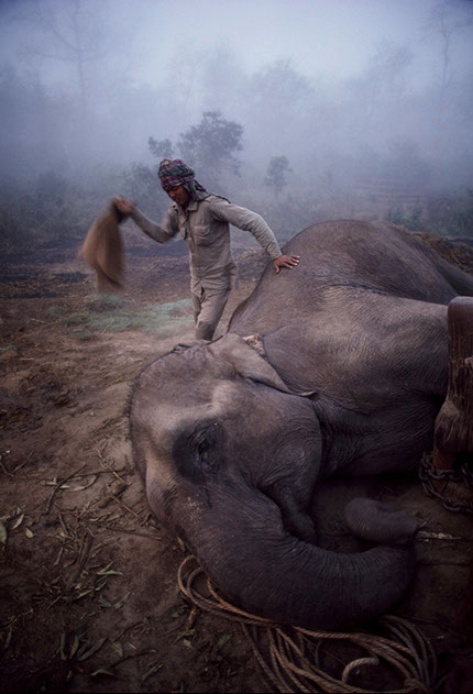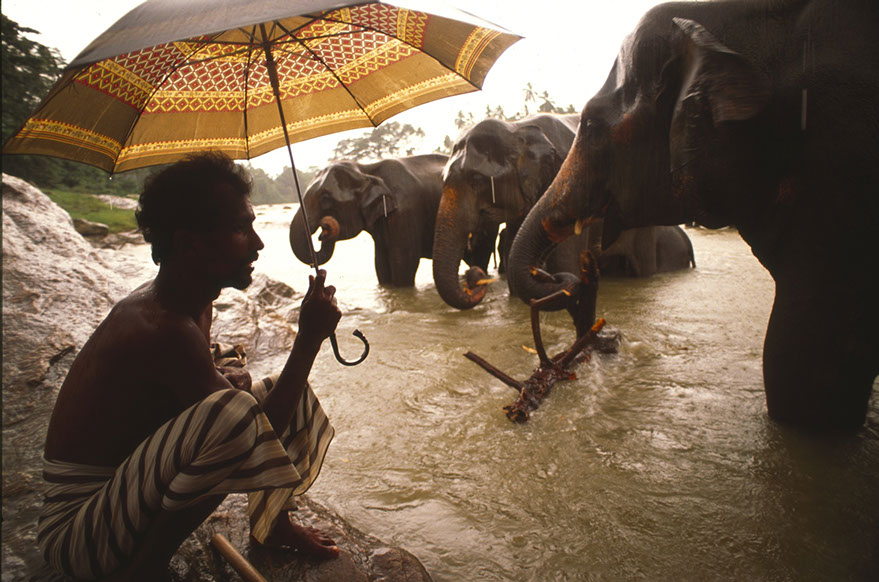 Kandy, Sri Lanka. A mahout takes a time out from washing his beast. Actually, they are both taking a time out.