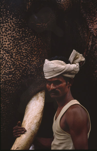 Sri Lanka: The face of a man who has worked with this elephant since he was a boy, and his father before him was the mahout of this same elephant.